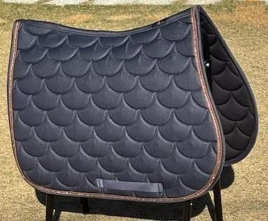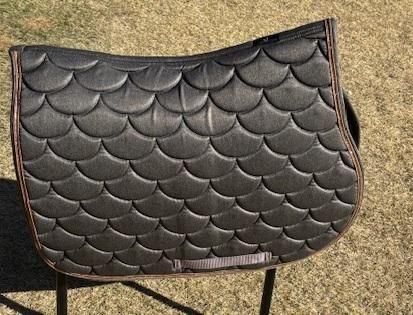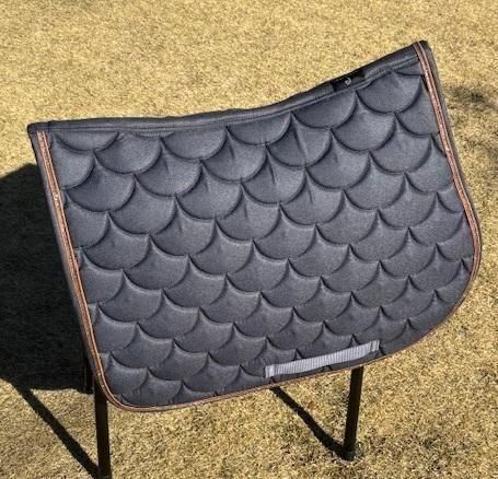 さらに、クールマックス仕様なので、8mm厚ですが200g/m²のポリフィルパッドが組み合わされて、優れた通気性と快適性を実現しています。 **ディテール** - ストラップループが付いており、簡単に取り外しが可能です。 - 左側にはロゴ入りレザーパッチが施されています。 - 縁には上質なレザーの縁取りが施され、高級感を演出します。 **素材** ポリエステル製で、耐久性に優れています。 色はダークグレーとライトゴールドブラウン 総合鞍、障害鞍仕様です。 横60:縦50cm 最近チェックした商品