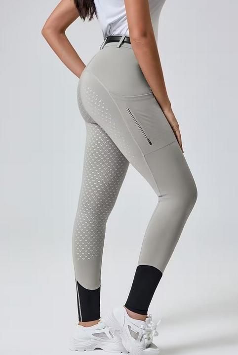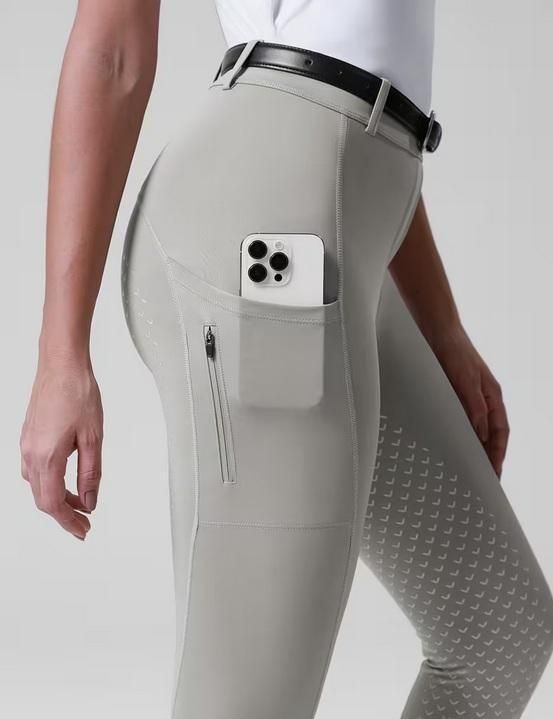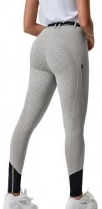レギンスタイプですがベルトループ付きなので夏場の馬術競技会で上衣なしでもベルトができるので通常のキュロットと同じにみえます。 サイドにはスマフォポケットとジッパー付きのダブルポケット付き。 ジッパーなしのポケットの内側にはすべり止め付 色は薄めのグレーベージュ(実際に公認馬術競技会で使用しました) シリコンはしっとりとしたタイプなので鞍へのフィット感が抜群です。 ポリエステルニット生地は超ストレッチが効いています。 丈も短めなので足首周りがダボつかず長靴がすっきり履けます。 レギンスタイプのキュロットを履けばもうもとには戻れないぐらい自然な履き心地です! オールシーズン対応:生地は薄め。 サイズ表:ウエスト:ヒップ:わたり幅:丈(共通62cm) 非常にストレッチが効いているので楽に3-5cmは伸びます XS:EU34-36:W65cm:H80cm:20cm S:EU36-38:W70cm:H86cm:23cm M:EU38-40:W75cm:H92m:26cm 最近チェックした商品